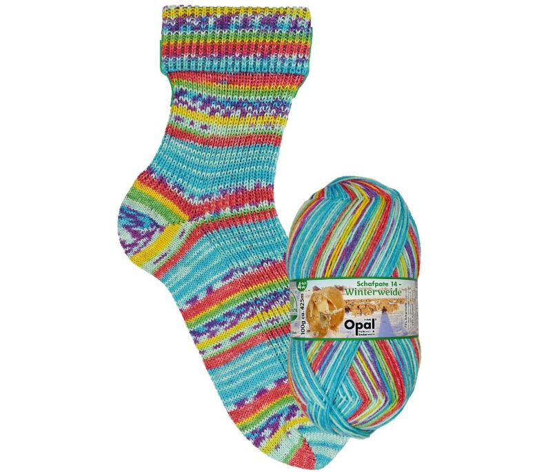 Opal Schafpate 14 Winterweide is een slijtvast garen van 75% scheerwol (superwash) en 25% polyamide in acht natuurlijke kleurcombinaties.